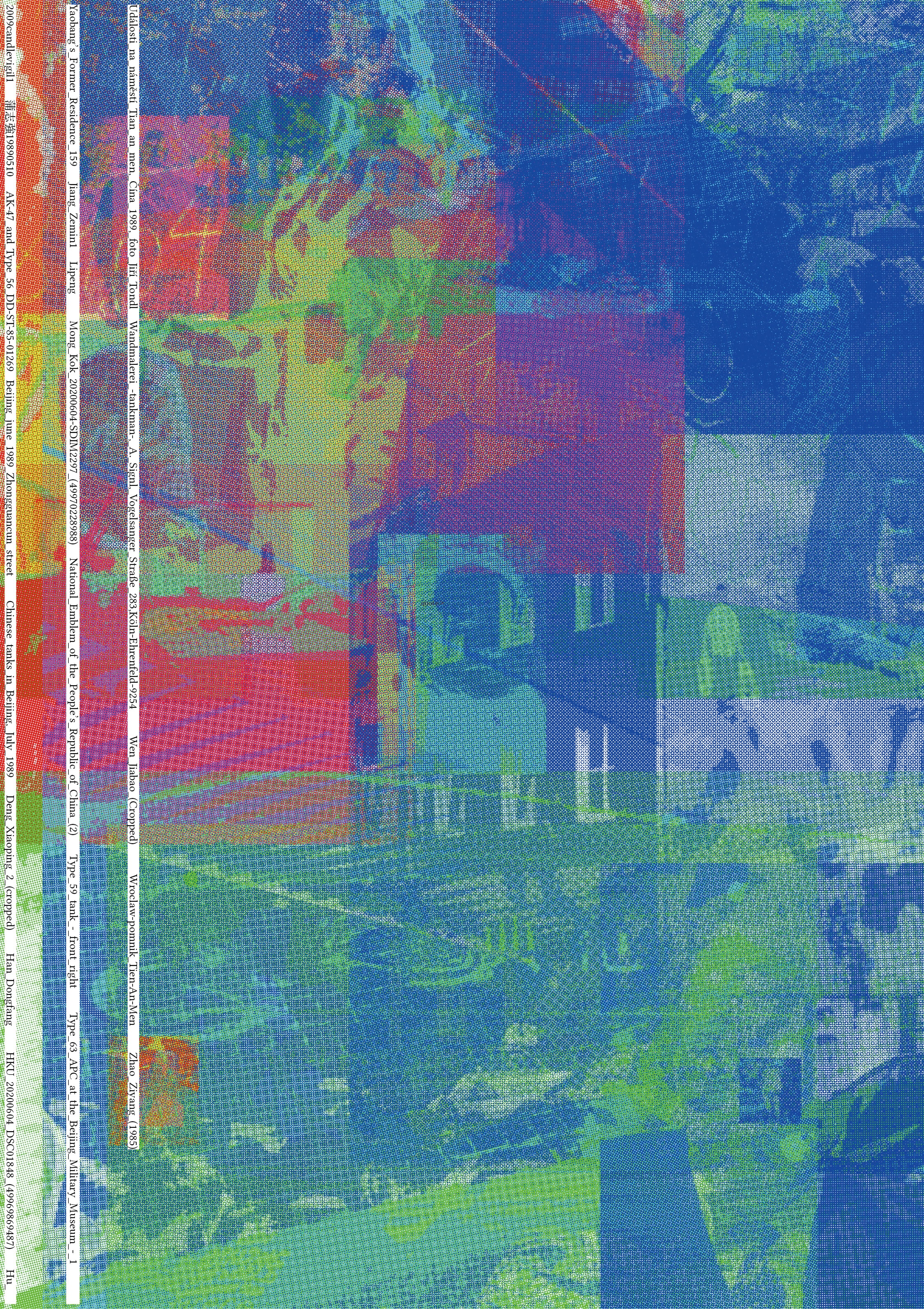 This poster explores how multiple images accumulate to form a single composition, mirroring the way countless edits build one Wikipedia article. Images are arranged in a repeated grid and layered at their original scales, allowing overlaps, alignments, and disappearances to occur naturally. As with RGB pixels combining into one image, fragments of visual information merge into a shared surface. Through an automated process that governs placement, overlap, and halftone conversion, the poster treats image editing as an act of accumulation, where information gradually transforms into a unified graphic form.